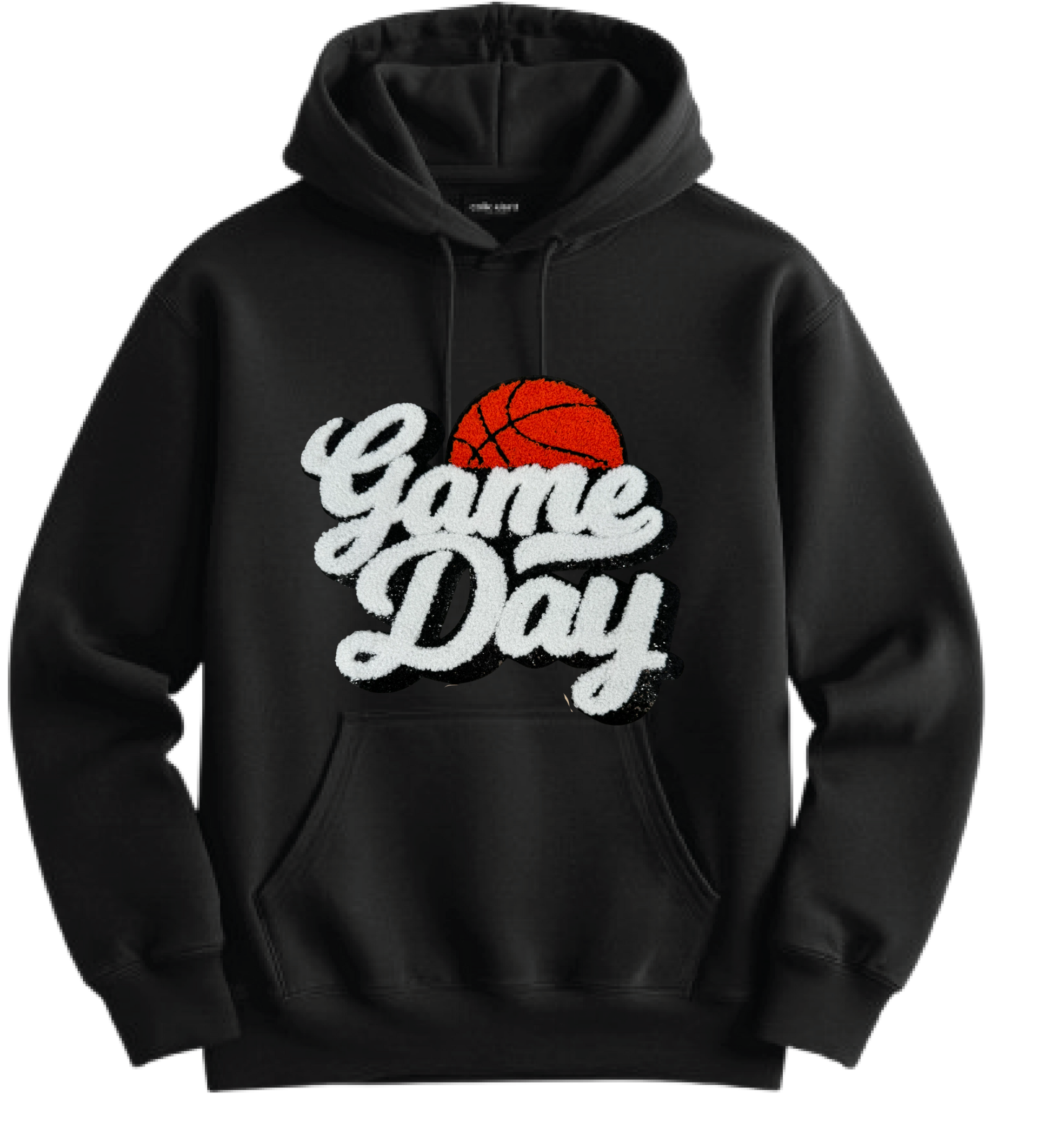 Show your pride with this premium sweatshirt featuring a sparkling embroidered patch with sequin ball that reads "Game Day" in crisp white. Available on comfortable gray, blue, red, white or black tops, This piece is designed to support YOUR HOME TEAM in style. Its eye-catching shimmer and versatile color options make it an essential addition to any fan’s wardrobe, perfect for energizing game day celebrations and everyday wear.